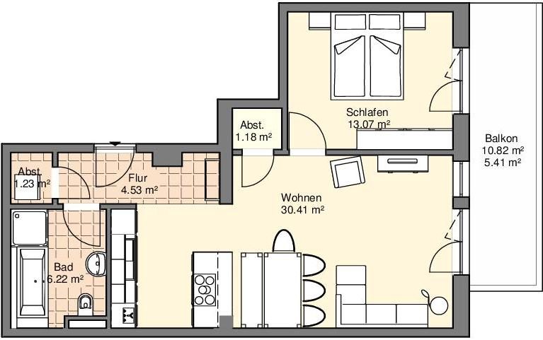 Belegung: 2 Personen und Aufbettung (Ausziehcouch) für 2 weitere Personen möglich