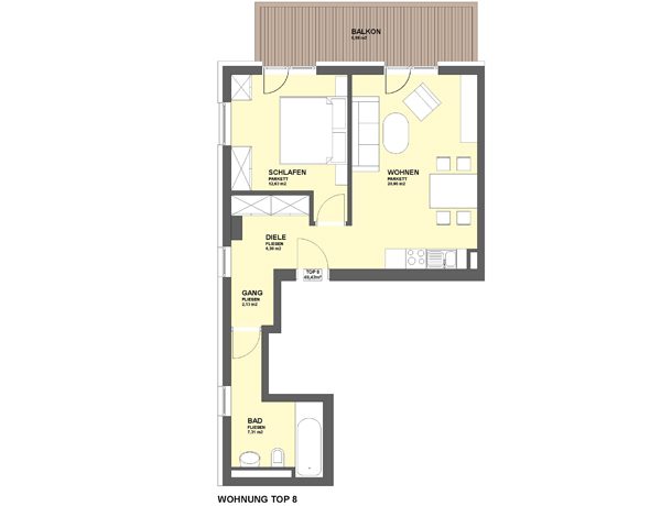 Die Wohnung ist sehr hell und wird schon morgens von der Sonne verwöhnt.